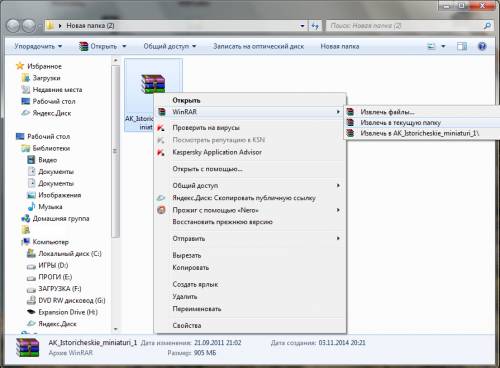 2. Выбираете "Извлечь" туда, куда вам нужно.